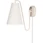 Væglampe fra Globen Lighting med et funktionelt, dekorativt design med et bevægeligt led og en lampeskærm i bouclé. Kan bruges til både fast og ledningsbaseret installation.