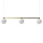 Lysekrone fra LYFA med et moderne design med inspiration fra den klassiske lysekrone. Den har tre omhyggelig formede lampeskærme i opalglas med en lineær struktur i metal med dekorative detaljer.
