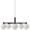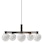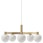 Lysekrone fra LYFA med et moderne design med inspiration fra den klassiske lysekrone. Den har fem omhyggelig formede lampeskærme i opalglas med en lineær struktur i metal med dekorative detaljer.